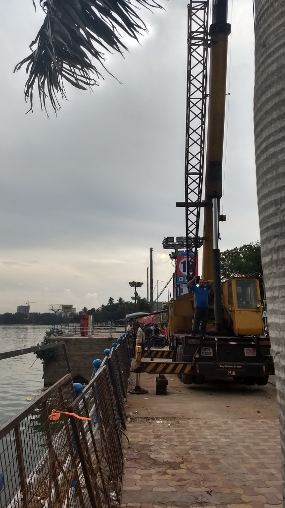 Cranes parked on the periphery of the Hussain Sagar Lake for immersion of Ganapati idols September 6, 2017September 6, 2017 2268 × 4032 IMG_20170904_164634441_HDR